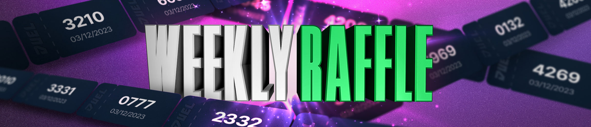 <figure><img src="https://3554740514-files.gitbook.io/~/files/v0/b/gitbook-x-prod.appspot.com/o/spaces%2F2fN8tRg5IZECQqhTBEyh%2Fuploads%2FpjGKlOkJzdfYWzLsWKJV%2Fduel-casino-weekly-raffle.png?alt=media&#x26;token=6959ad10-d09f-4059-9b11-3790a273be9b" alt=""><figcaption></figcaption></figure>